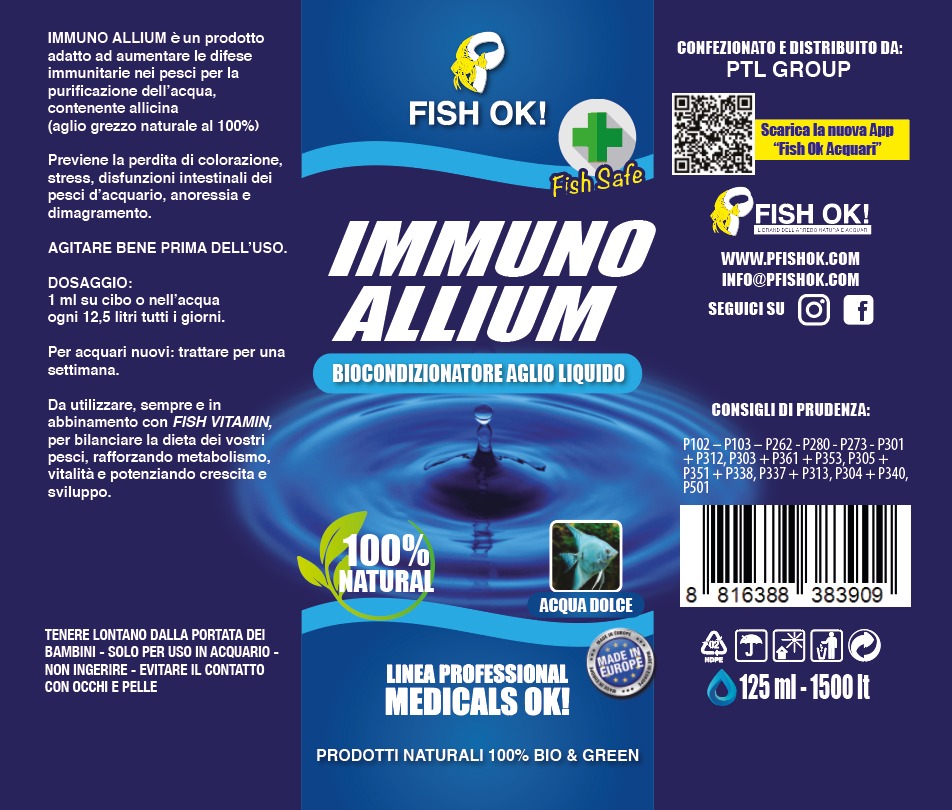 IMMUNO ALLIUM è un prodotto adatto ad aumentare le difese immunitarie nei pesci per la purificazione dell’acqua, contenente allicina (aglio grezzo naturale al 100%)